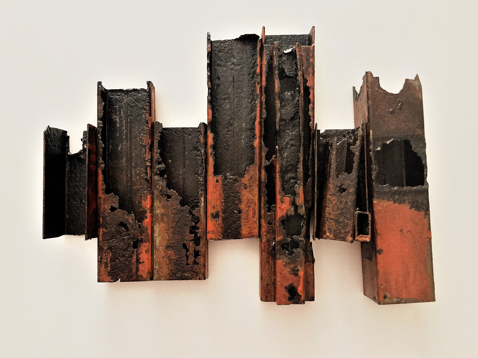 The eroded and rusted side emphasizes on identity, time and transmutations. In a will for authenticity and truth, the welded parts are kept visible as well as the traces of random sawing.